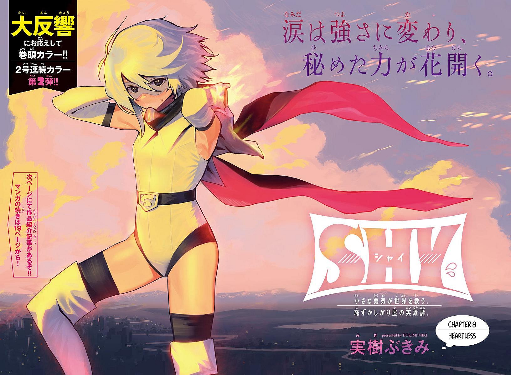 Penned by mangaka Bukimi Miki, SHY follows the growth of the titular fourteen-year old heroine Shy, who with the help of her friends and teammates faces down her biggest fears, insecurities, and the pressure of her role as Japan’s representative hero in order to become a true blazing heroine whose heroic deeds can inspire those around her.