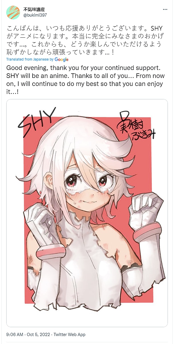 Met with an overwhelmingly positive response to the news, Miki shared another image of SHY and expressed further appreciation to fans for their continued support of the series.
