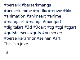 Carrillo then wrote, “thank you all for the support, hopefully this short film will turn into a movie or series in the future” before concluding the post with a number of Berserk and anime related hashtags.