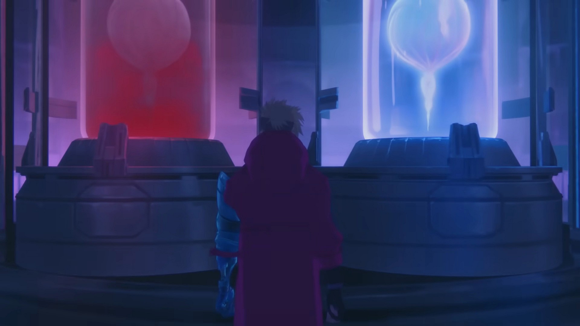 As the ship ultimately explodes, Vash lets out one final cry for Rem as the screen goes black before transitioning to the trailer’s first shot of adult Vash (CV: Yoshitsugu Matsuoka: Inosuke Hashibira in Demon Slayer), who can be seen investigating a lab with two chambers, one red and one blue.