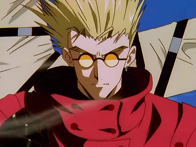 With the scene cutting to Vash in a battle with what is presumed to be a bounty hunter, the blonde-haired gunman recounts how his brother is somewhere on the far-east side of the planet before dodging a point blank shot to the face.