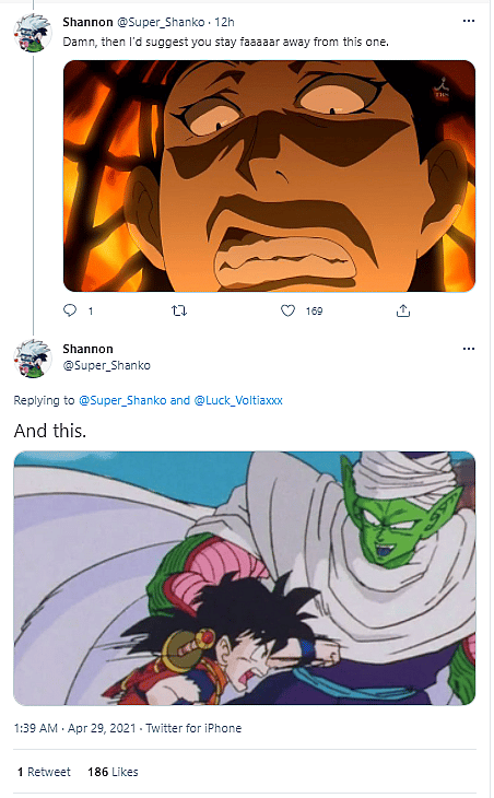 He then followed that up with a screenshot from Dragon Ball Z of Piccolo training Gohan.