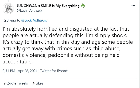 The user continued, “I’m absolutely horrified and disgusted at the fact that people are actually defending this. I’m simply shook.”