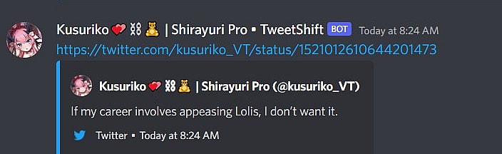 In another set of tweets shared by @VTuberCringe, hilariously captured because “the bot on the official Shiayuri Productions Discord is transmitting all of your tweets”, Kusuirko can be further seen taunting her critics.