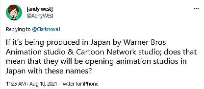 In response to a fan who asked if his new position implied that Warner Bros. “will be opening animation studios in Japan”, DeMarco explained, “No it means we will be over seeing productions that we work with Japanese studios to make.”