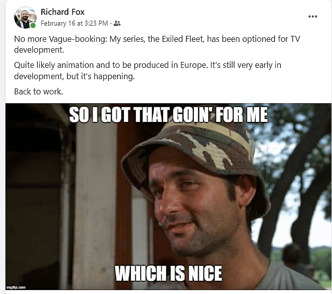 The new development of his The Exiled Fleet series into a show is sure to delight Fox’s readers, as the author continues to rise to greater prominence in the field.