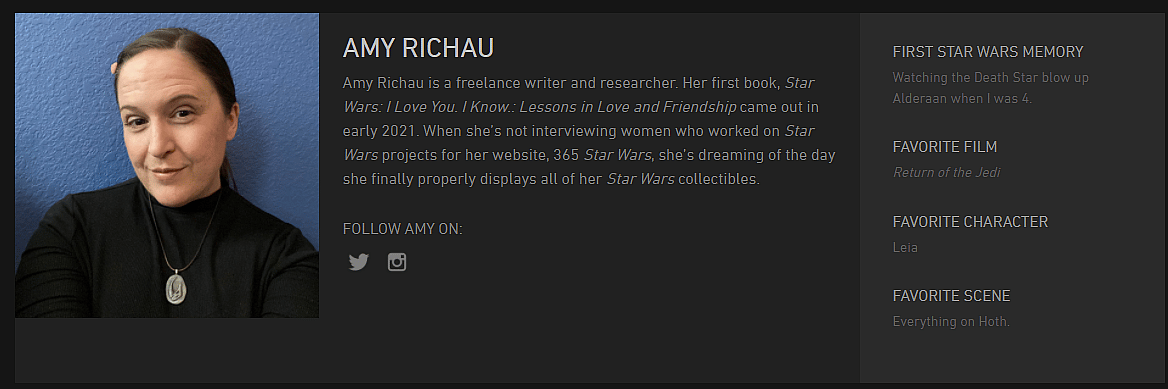 As noted by StarWars.com, Richau is a “freelance writer and researcher.”