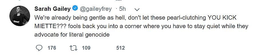 When one user asked her to promote her ideas through “informing people and peacefully protesting,” Gailey simply responded, “nah.”