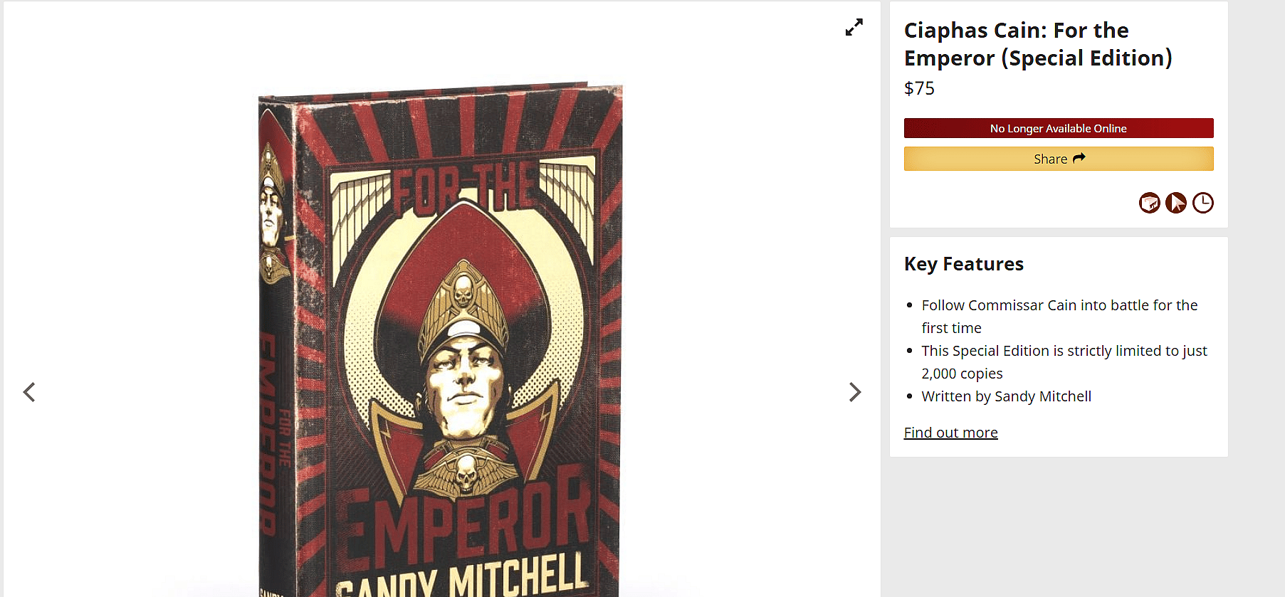 Games Workshop and Black Library have seemingly already sold out of their recently announced special edition of Ciaphas Cain’s first novel, For The Emperor, by Sandy Mitchell.