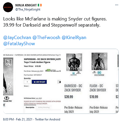 Listings Indicate McFarlane Toys Producing Figure Line Based On Zack Snyder’s Justice League