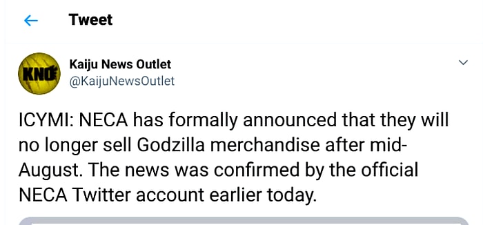 The statement reads they will not be “selling Godzilla merchandise” after mid-August and buyers are in the middle of their final opportunity to get the merch while it lasts.