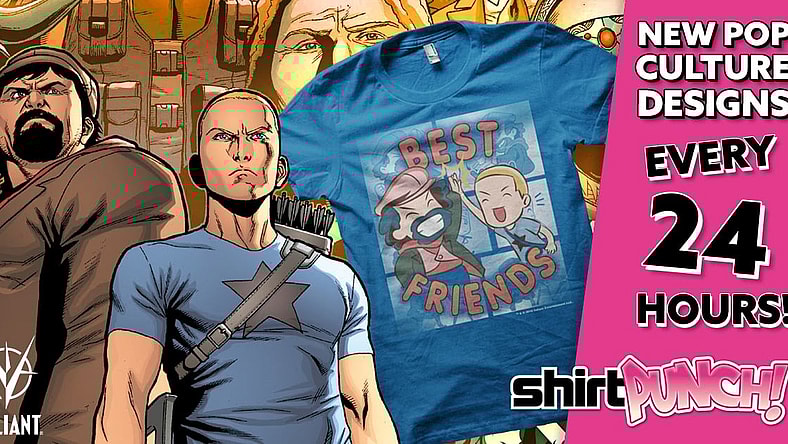 Valiant has teamed with ShirtPunch for a limited edition, one-day-only run of Archer & Armstrong apparel with a never-before-seen, emoji-inspired “Best Friends” design.