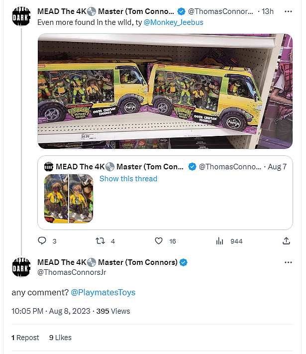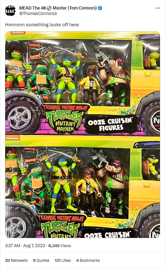 Connors shared the photo of the two Ooze Cruisin’ boxes and then questioned, “any comment? Playmates Toys?”