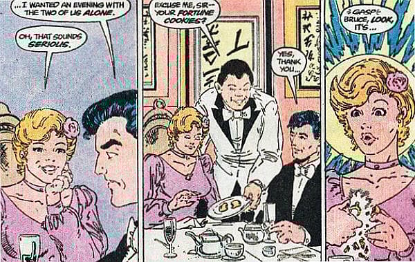 Here’s a weird one. Barbara, aka Batgirl, is the daughter of Commissioner Gordon and has always been a fan favorite member of the Bat-family. There was never really any indication of romantic feelings between her and Batman, besides one offhanded comment made in the Batman Beyond series. The reason she is on this list is because of the recent animated version of the classic story, The Killing Joke. In order to pad out the run time, a subplot was added featuring Barbara being harassed by a jerk named Paris France (really) and the unnecessary arc culminated in Batgirl and Batman doing the Batusi on the rooftops of Gotham. Gross.