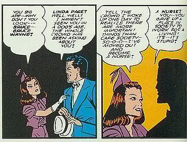Linda Page has the distinction of being one of the only characters created for the old Batman serials to ever cross over into other mediums. She was first portrayed by Shirley Patterson, and then made her comics debut in the pages of Batman #5. Besides being a romantic partner for Bruce, she was also a rich socialite who spent her spare time caring for the elderly. No real tragic backstory here, but she eventually just kind of disappeared.
