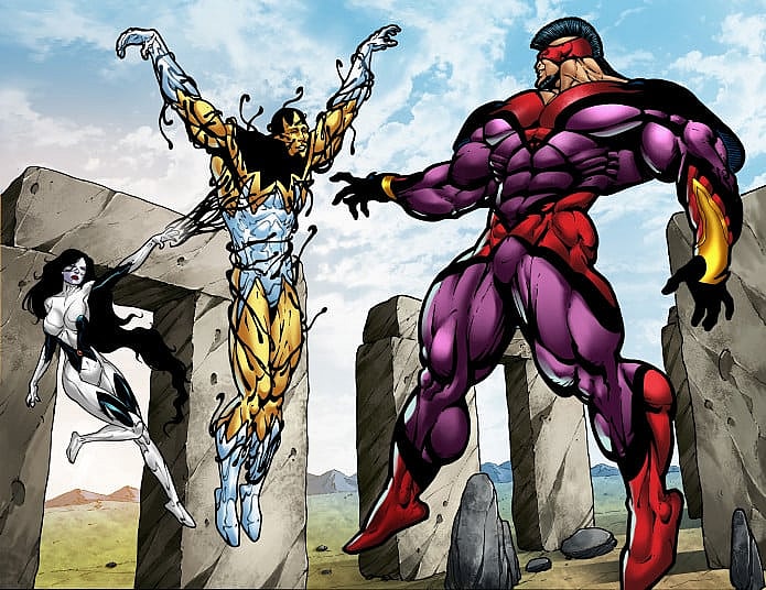 “But 1stMan isn’t the only character in this tale. Penumbra is the last survivor of one of the worlds destroyed by Monarch. She’s a femme fatale, not an ally of 1stMan so much as she is concerned with self-preservation. Her main goal is to stop Monarch from gaining the 10th Essence. Once he wields the power of the Ten, Monarch will be unstoppable,” the description concludes.