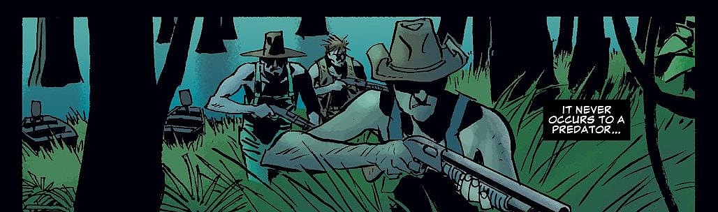 In the pages of The Punisher Max #74, frank decides to take the fight to a bunch of Bayou dwelling criminals who are on the hunt for him. After blowing up a shack and exposing his location to his pursuers, Frank and his unlikely accomplice Nigel turn the tables.