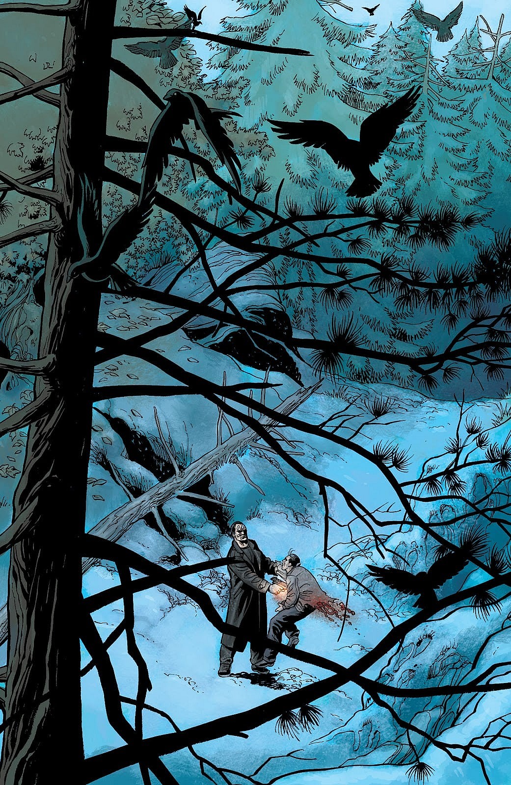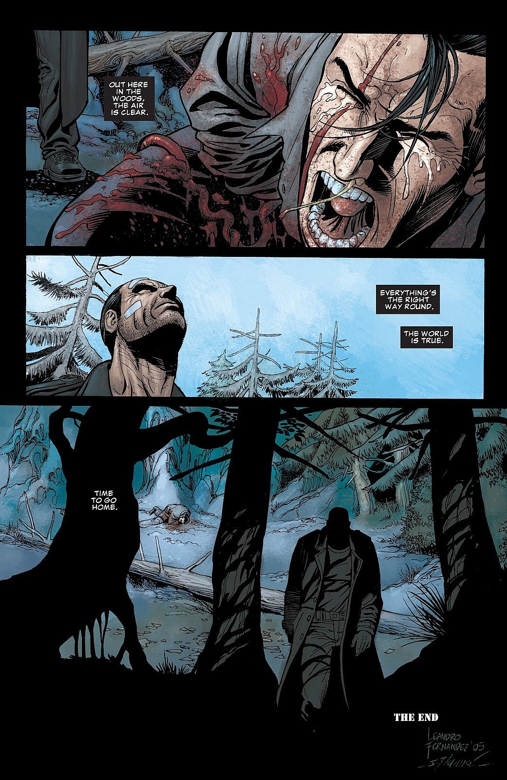 We continue with the pages of Punisher Max and in issue number 24, Frank Castle puts Italian mafioso Nicky Cavella out to pasture. Cavella provokes Castle’s anger by digging up the bodies of Frank’s wife and his two kids. But he doesn’t just dig up their bodies. He also takes a leak on them. To make matters worse for Cavella, he videotaped the whole stunt in an attempt to provoke Castle. The ploy nearly works, but Castle gets some help and he’s able to kidnap Nicky Cavella and take him out into the mountains.