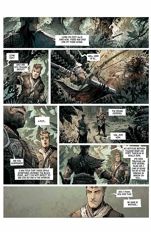 It is in the heart of this green hell that the Cimmerian meets Balthus, a young voluntary peasant whom he saves at the last minute from the clutches of fierce Pictish warriors.