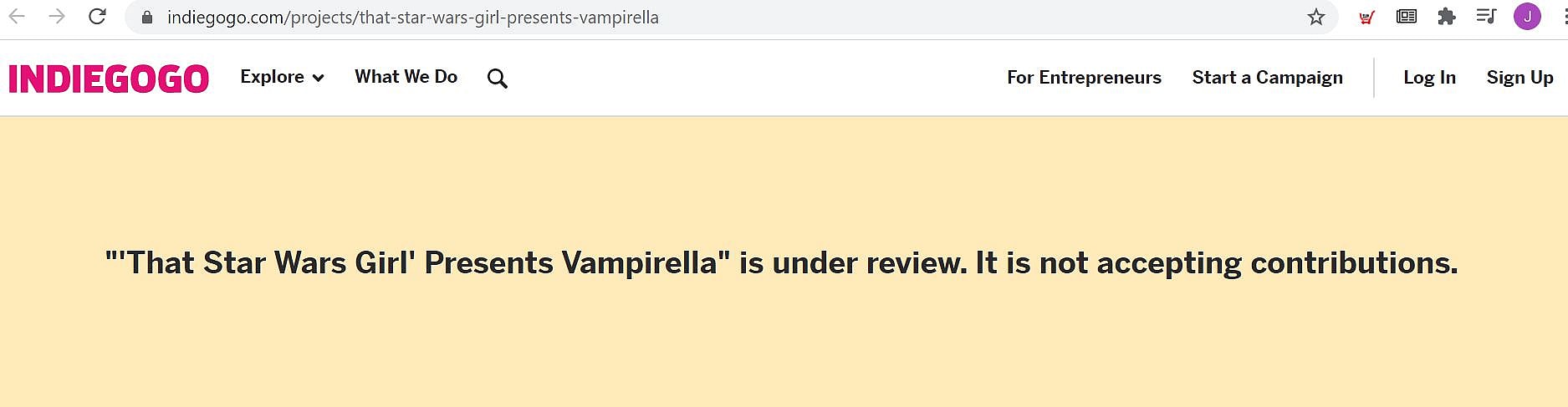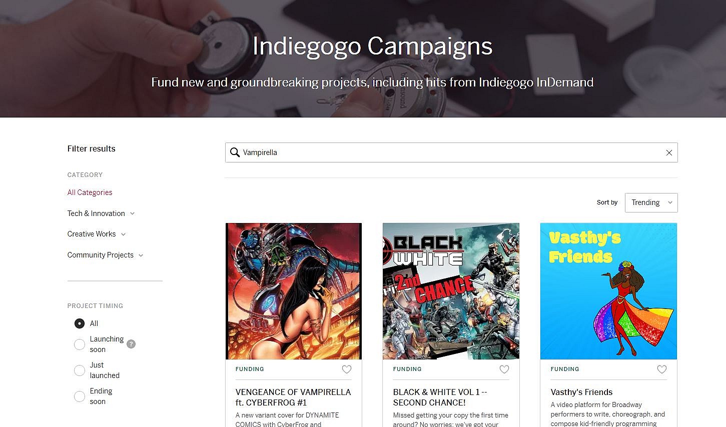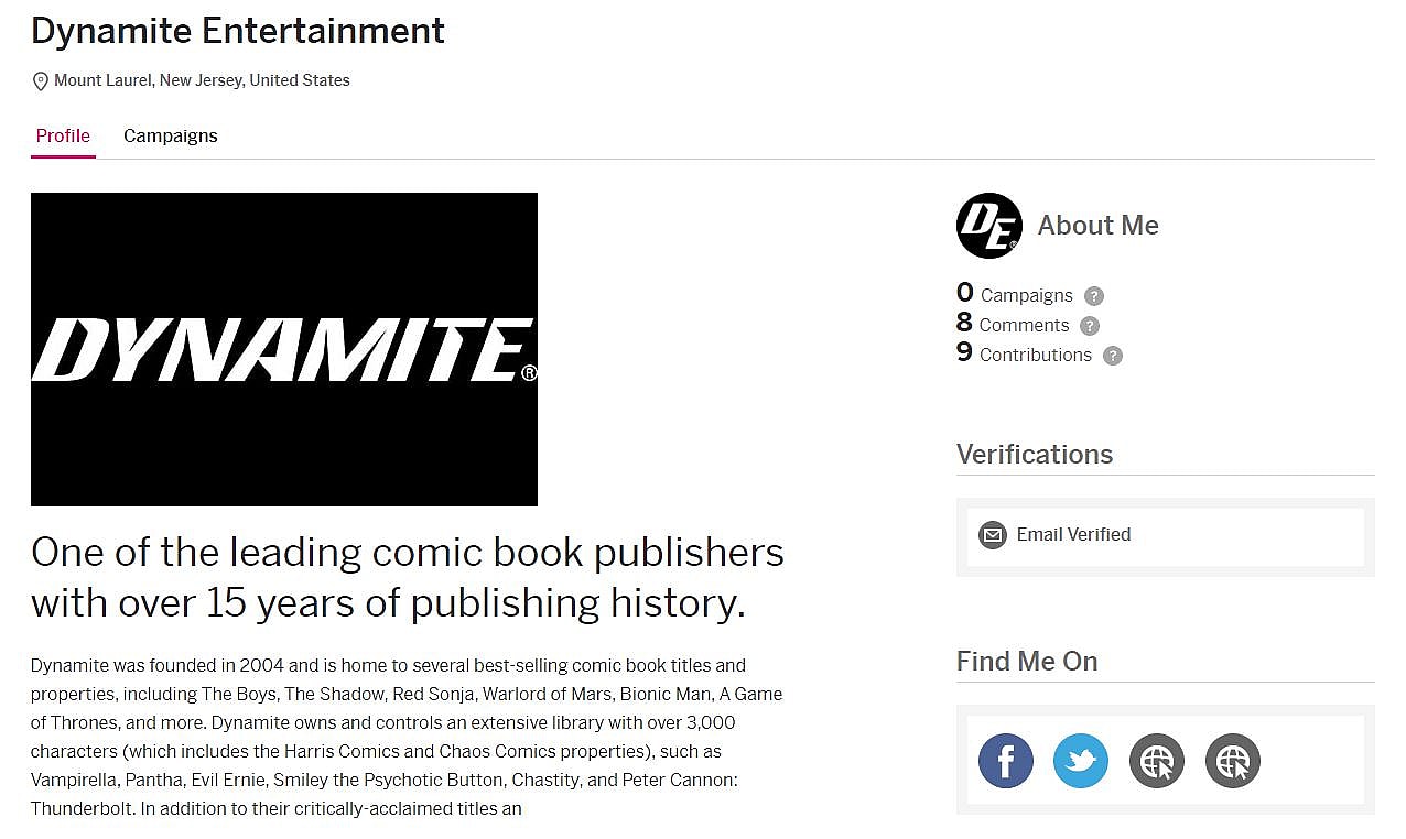 In fact, when you access Dynamite Entertainment’s profile page for IndieGoGo it shows that they have 0 campaigns currently running.