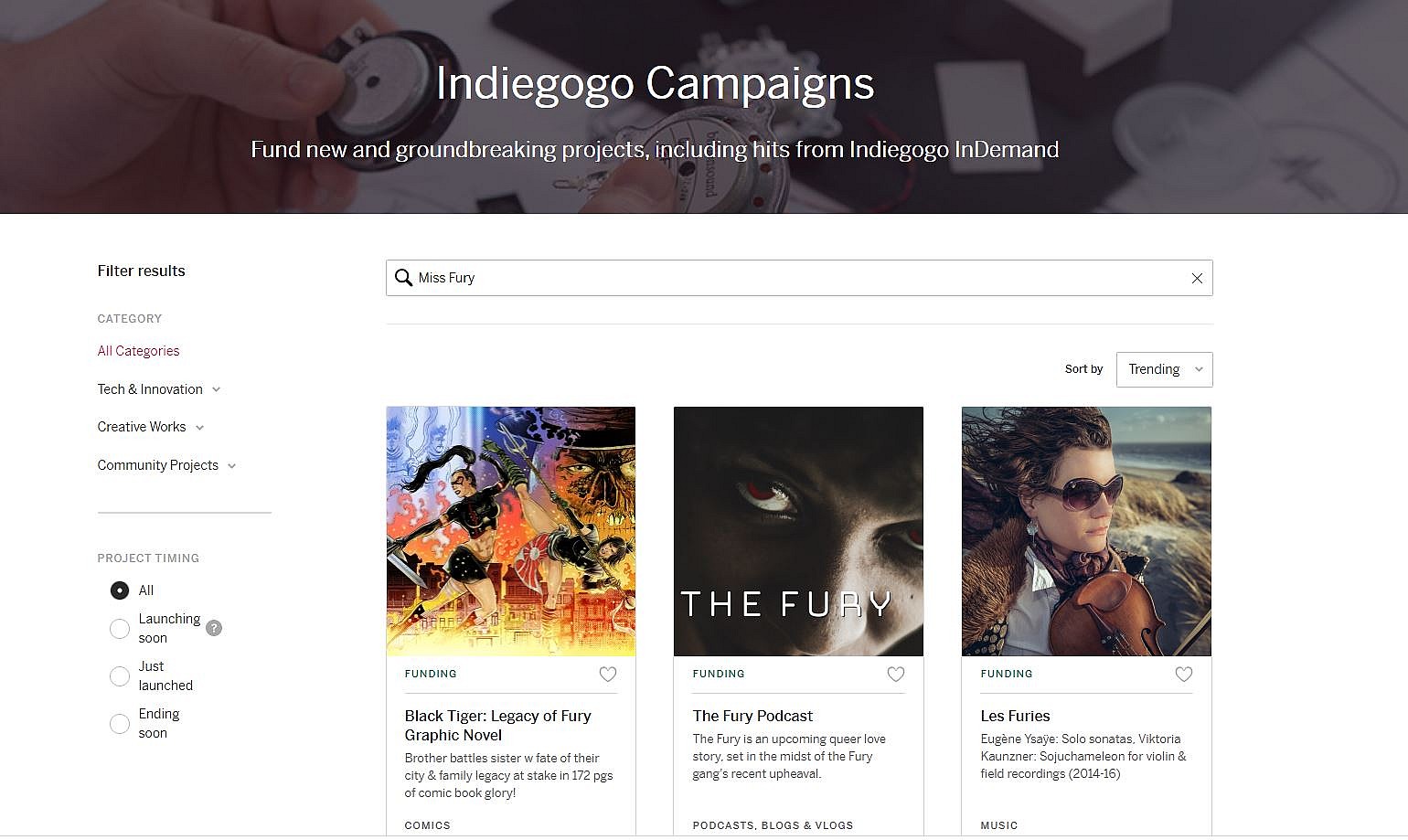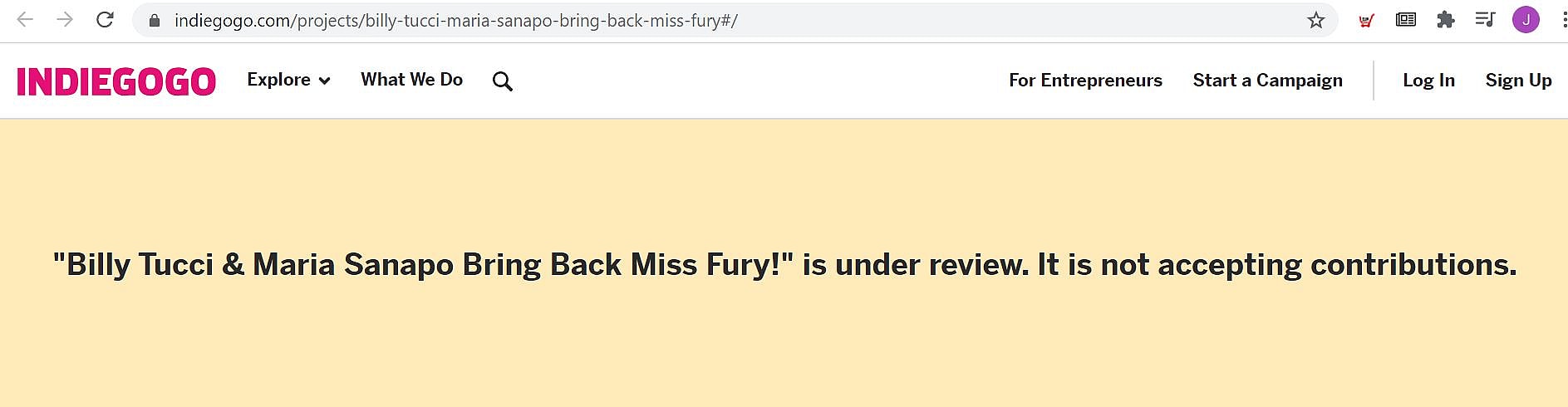 Other campaigns included Billy Tucci and Maria Sanapo’s upcoming Miss Fury graphic novel. It was placed under review.