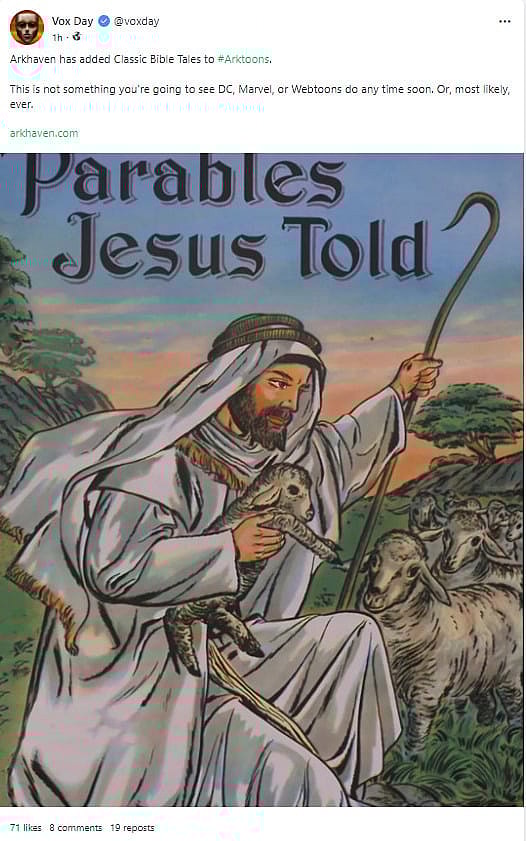 Day made the announcement on Gab. He stated, “Arkhaven has added Classic Bible Tales to Arktoons.”
