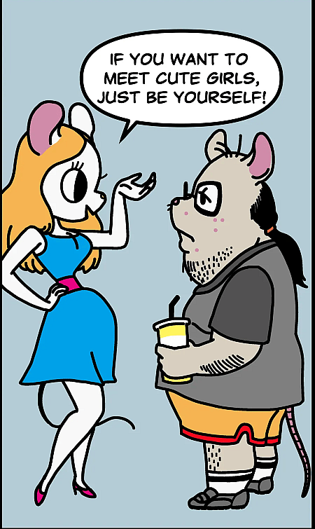 Meet Hypergamouse. She is trying to coach a friend on, (what is for him) the impenetrable mysteries of the female mind. I’ll say this for Hypergamouse, she isn’t afraid of a challenge.
