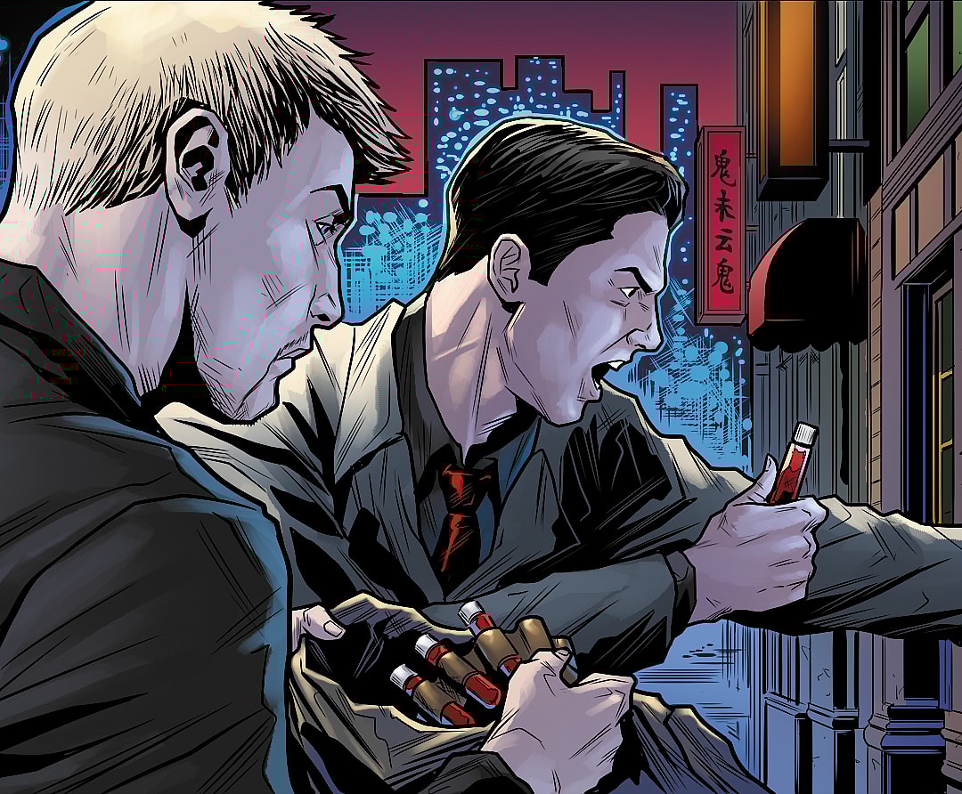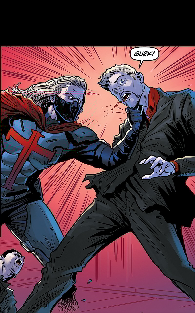 Bruce Wayne established the Billionaire-Playboy-by-day-masked-Crime-fighter-by-night stereotype. It’s been used a LOT since then. Oliver Queen, Tony Stark, Danny Rand, Adrian Veidt, Ted Kord, you can think of plenty of others by yourself. But Dixon has come up with a fascinating inversion of that stereotype.