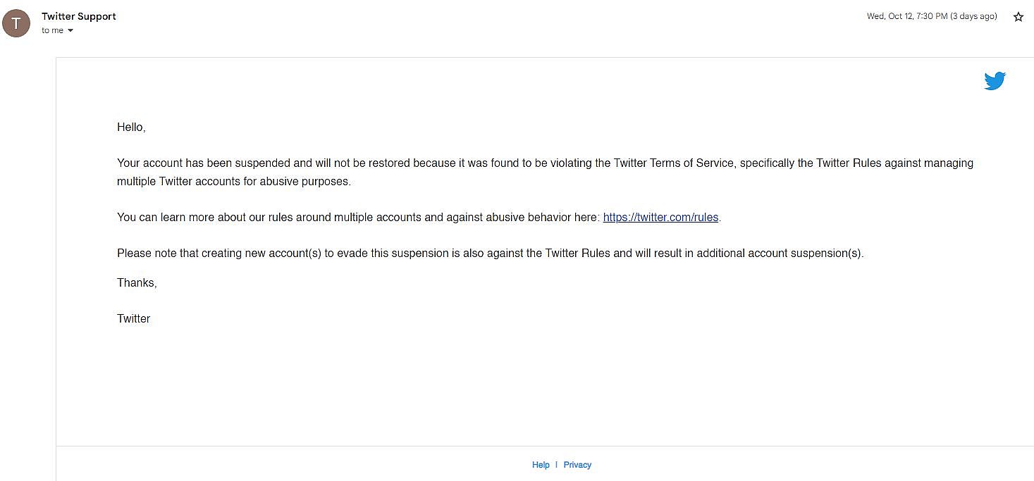 As to why the account was banned, Twitter informed the team that it had violated “the Twitter TOS, specifically the rules against managing multiple accounts for abusive purposes.” Chris Braly, the campaign manager, appealed the ban but Twitter didn’t budge on its decision.