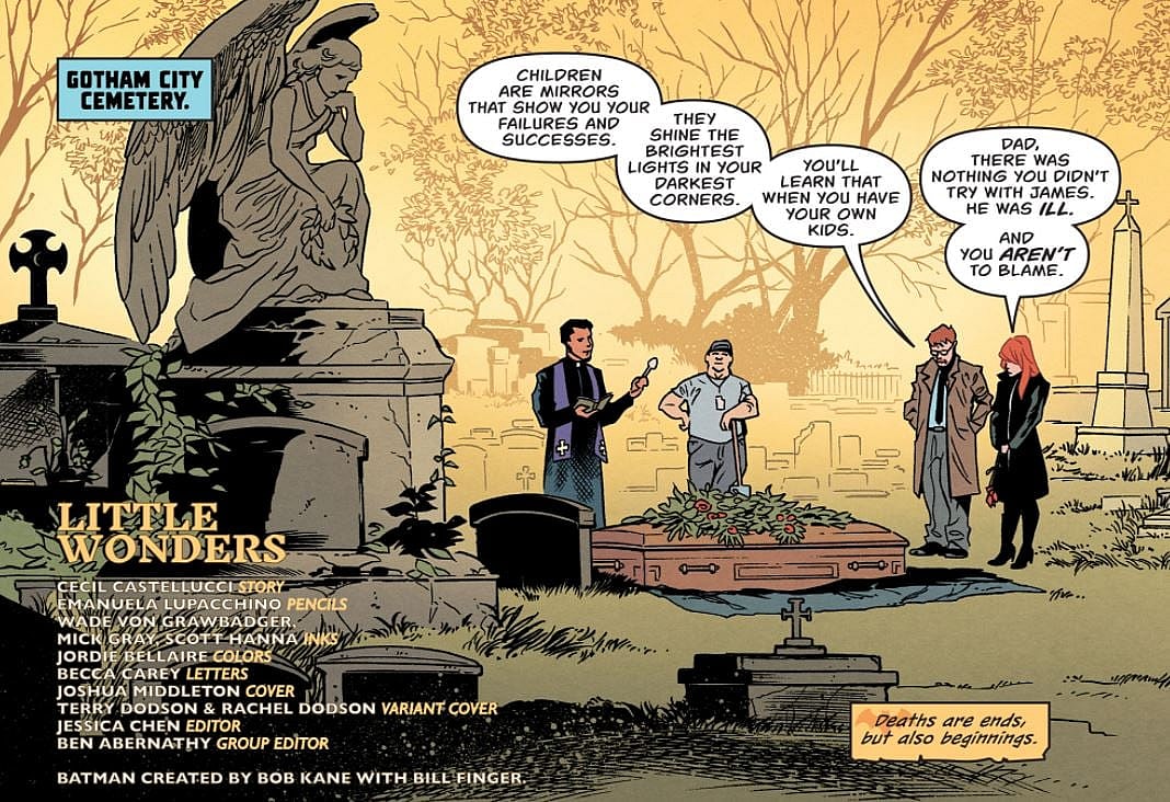 In an 8-page preview of the book released by DC Comics, it begins with Barbara Gordon and her father Jim Gordon burying James Gordon Jr. in the wake of the Joker War storyline.