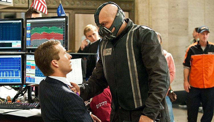 Christopher Nolan injected a similar twist to the mythos in The Dark Knight Rises when Bane and the League of Shadows hit Batman where it hurts by taking Gotham’s financial district hostage. Hacking it to trade stocks in Bruce Wayne’s name, they rendered him almost penniless.