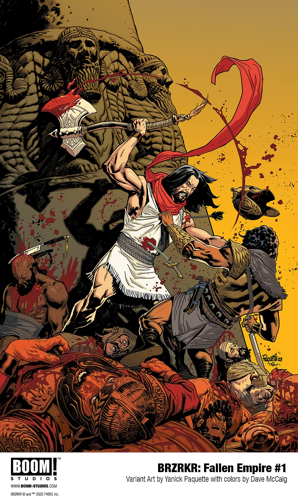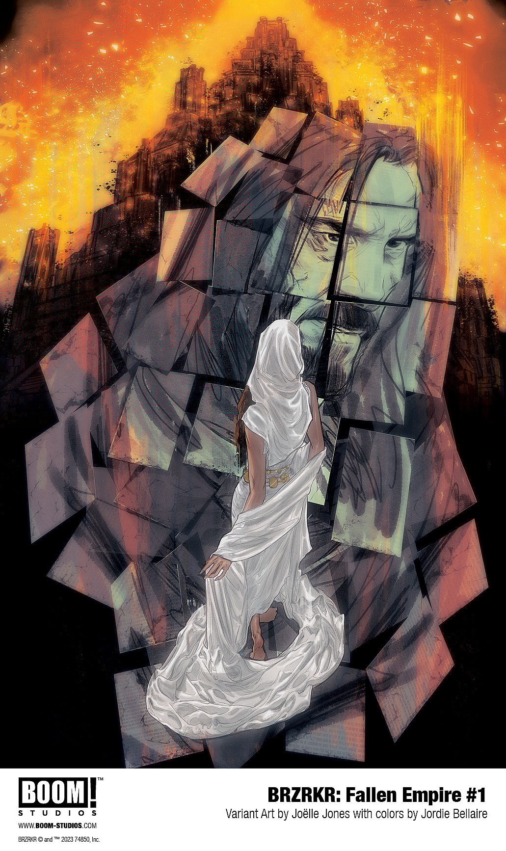 In a press release BOOM! Studios revealed Tomlin is joined by artist Rebekah Isaacs and colorist Jordie Bellaire for BRZRKR: Fallen Empire #1.