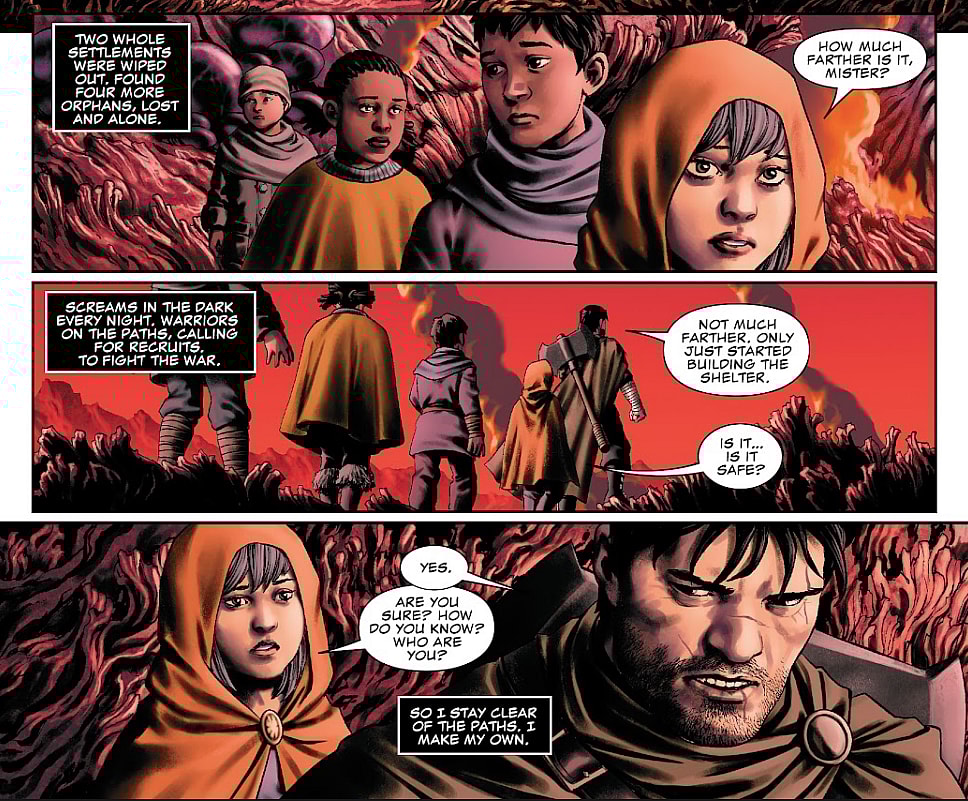 However, Castle did not seemingly die, but he transported himself to Weirdworld where he’s taken at least four orphans under his wing and built a shelter to keep them safe.