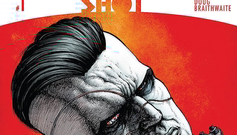 The story written by Jeff Lemire with artwork from Doug Braithwaite details the story of Bloodshot in the year 4001 A.D. The man called Ray Garrison is no more, but the nanites that once thrived inside him still endure. These microscopic machines once drove Bloodshot through every firefight, healed his every wound, and calculated every outcome. Now they have on final directive left to execute…but what could it possibly be? And how will the forces of the future react when the infamous man-turned machine called Bloodshot returns to fight another day?