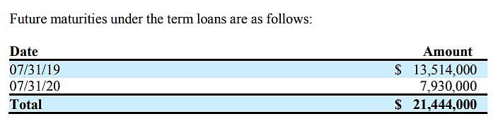 With the addition of this new loan IDW Media Holding’s for future maturities under the term loans is at a total of $21.4 million.