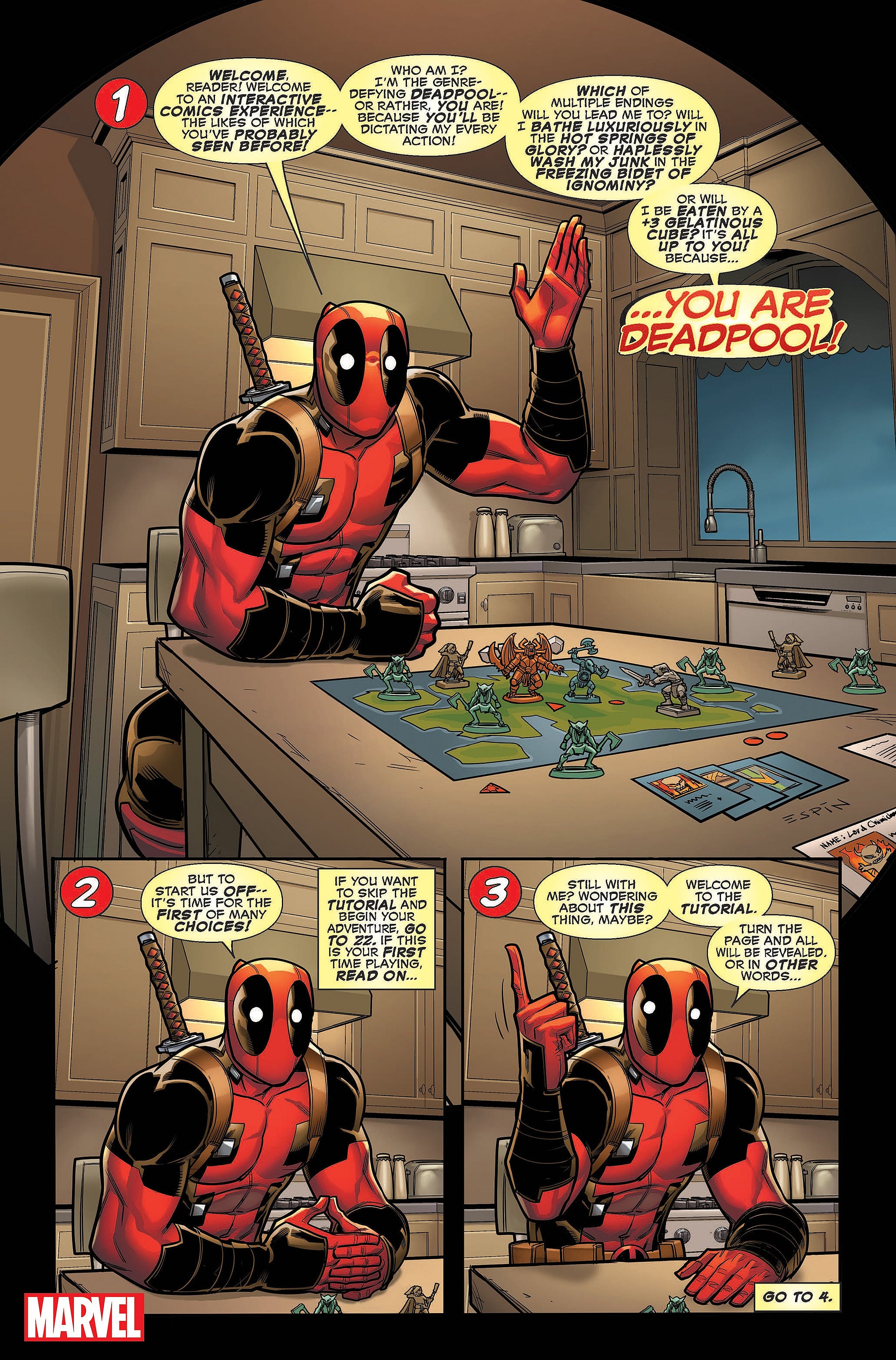 YOU ARE DEADPOOL is an interactive narrative that lets readers control Deadpool’s story by rolling dice, keeping track of their scores, and making smart (or disastrous) decisions.