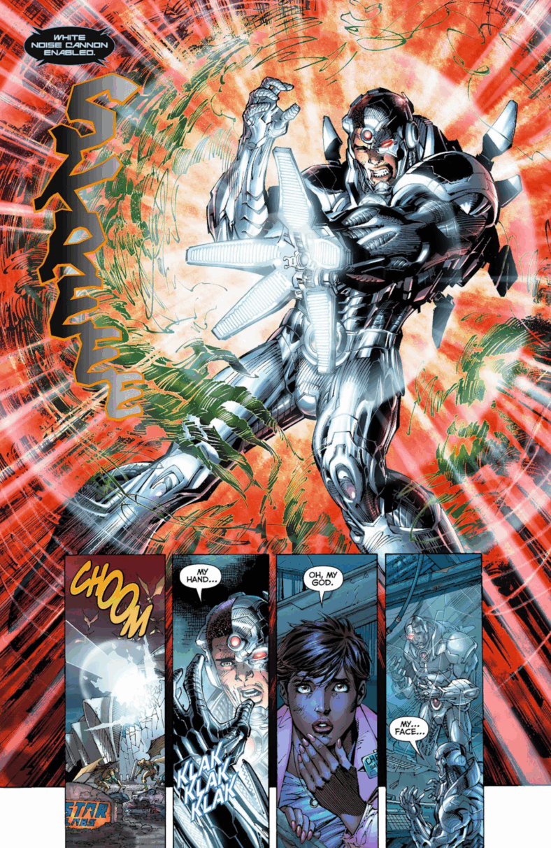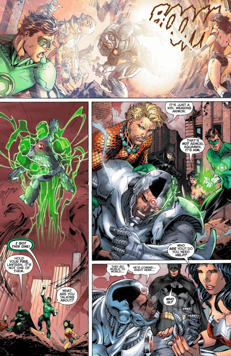 As established in the Geoff John’s penned, Jim Lee illustrated Justice League Vol. 3 #1, rather than making his superhero debut with Starfire, Raven, and other such ‘second-generation’ heroes, Cyborg was instead canonized as having done so alongside Superman, Batman, Wonder Woman, Aquaman, Green Lantern, and The Flash in opposition of Darkseid’s invasion of Earth, after which they would go on to found the Justice League proper.