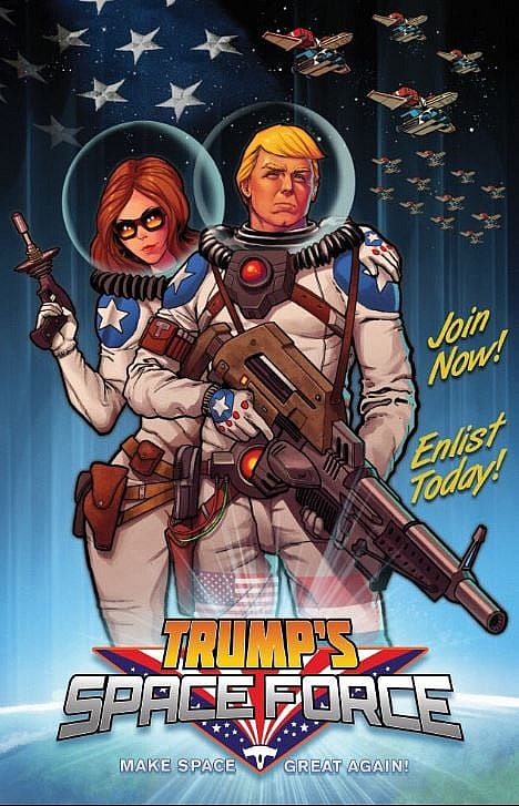 TRUMP’S SPACE FORCE is preparing for takeoff: @Dixonverse @BrettRSmith76 @DaveDorman @PelleCreepy and I are doing last minute inspections. If you need merchandise or are itching to do fan art, have at it! We’ll be launching very, very soon.?