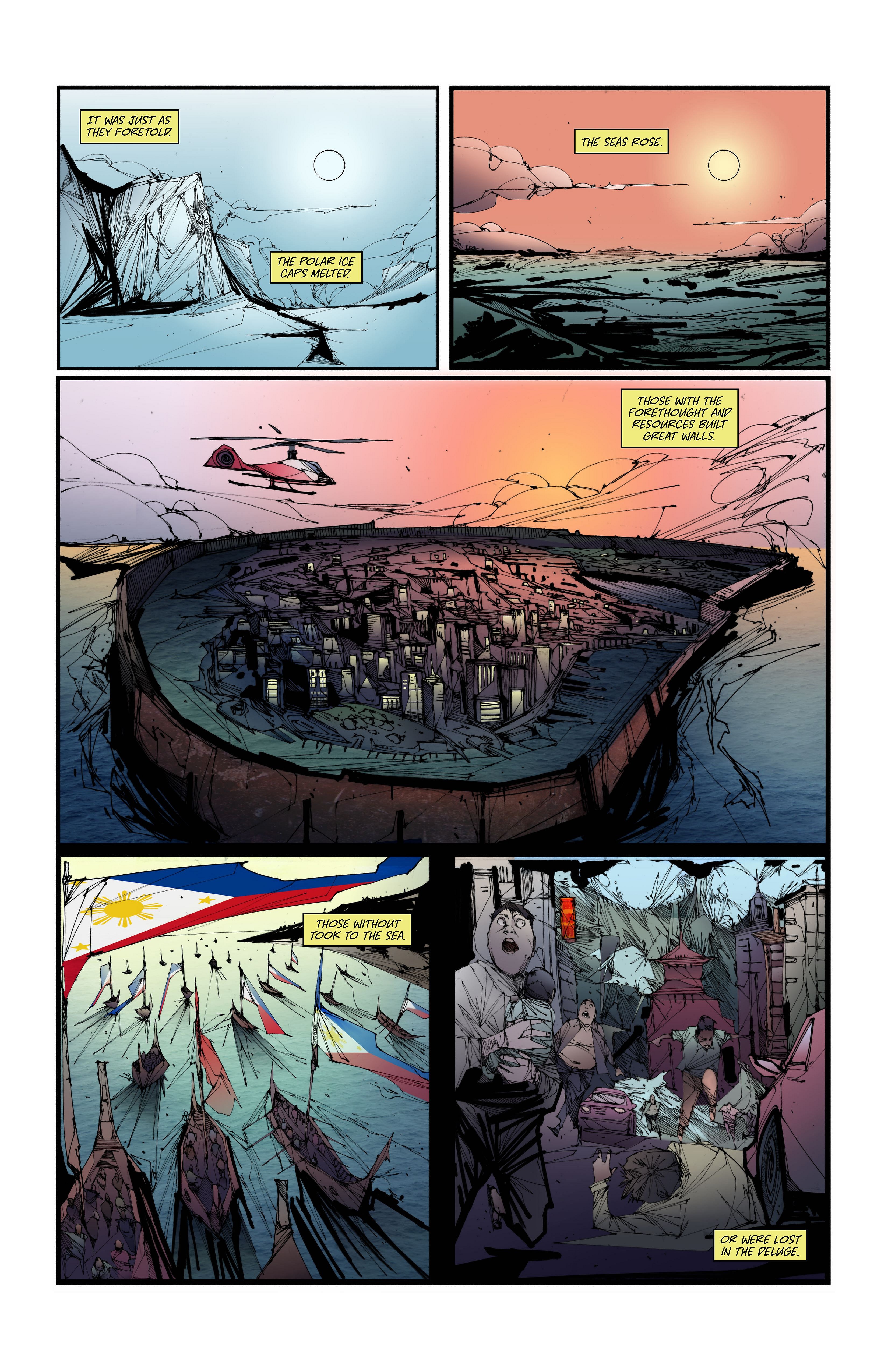 “Even though this is a fantasy comic, I didn’t shy away from exploring serious topics that are real problems in the world today. Issues like global warming, overfishing of the oceans, corporate exploitation, political overreach, and race relations are tackled head-on. Given the current state of affairs in the world, Scrimshaw’s imagined future doesn’t seem so far-fetched.” explains Eric Borden, writer of Scrimshaw.