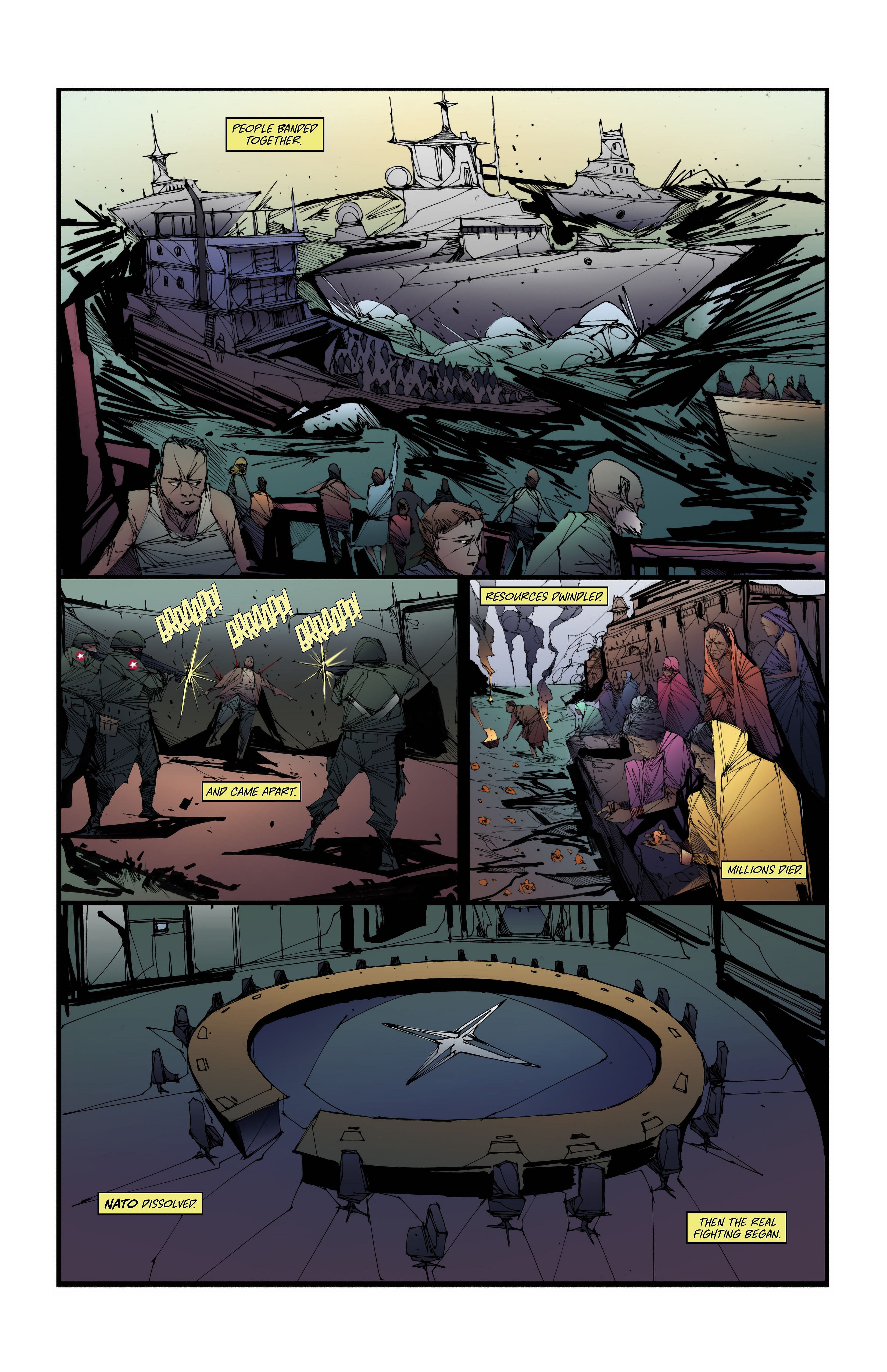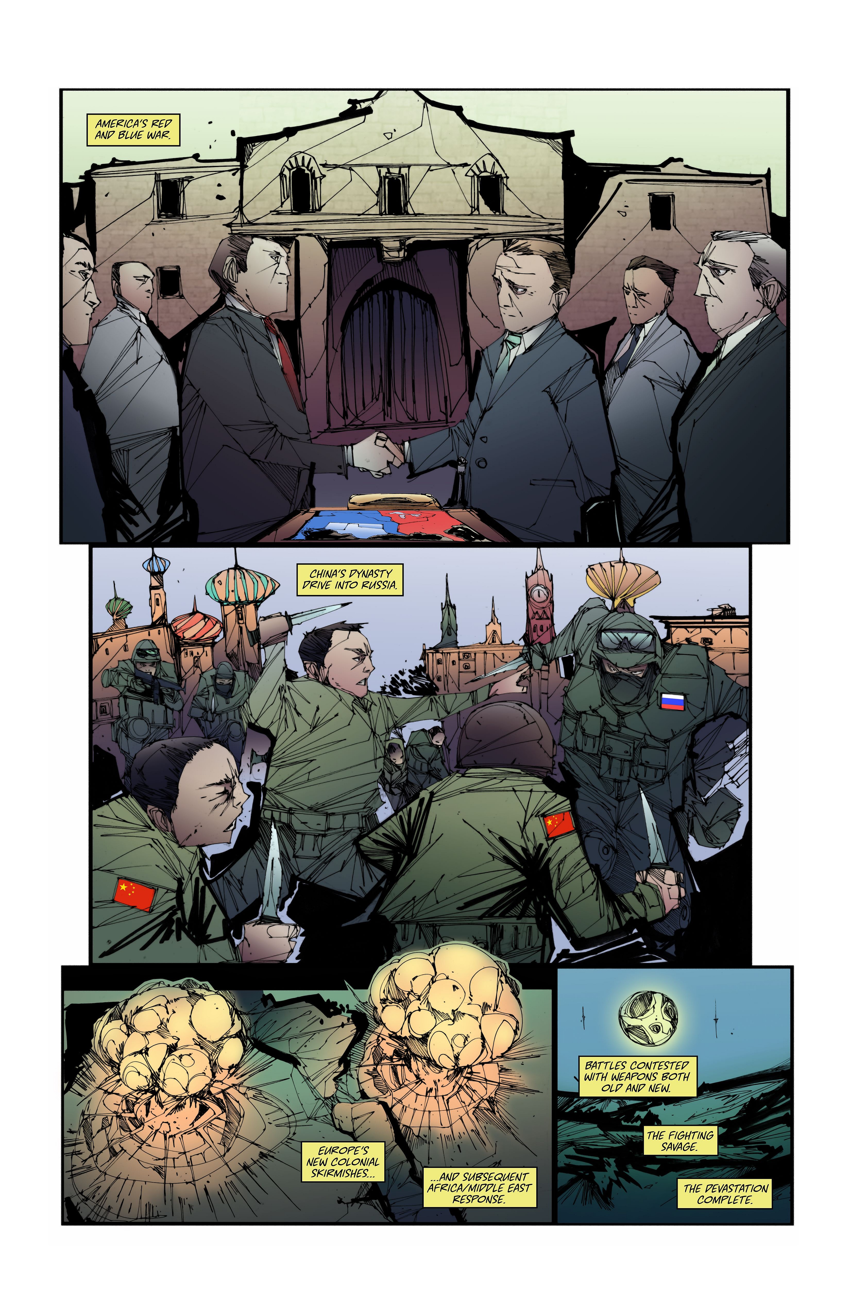 Scrimshaw was created by award-winning screenwriter, Eric Borden. Borden has authored many shorts, a few features (Fever), a couple of comics (Dead West, Blood Game), and one book. The comic is illustrated by Dave Mims who has a background in graphic design and works in a range of areas including comics (The Infected, All Hallow’s Eve) and videogame art. Joining the team as story consultants are Mark Quist and Rashad Tabeb.