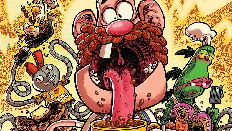 Good morning! From the wacky minds of mad scientist creators, explore the oversized chaos and wonder of tigers farting rainbows, wizards trying to return long-forgotten VHS tapes, and professional wrestling between a pizza with shades and a dinosaur man. If you’re a fan of the Cartoon Network series, don’t miss out on this Uncle Grandpa special issue!