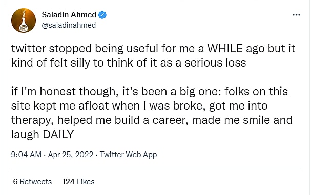 “if I’m honest though, it’s been a big one: folks on this site kept me afloat when I was broke, got me into therapy, helped me build a career, made me smile and laugh DAILY,” Ahmed added.