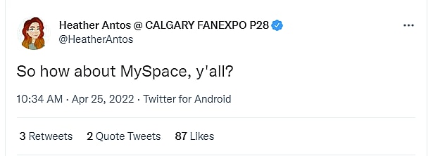 IDW’s Senior Editor for Star Trek Heather Antos tweeted, “So how about MySpace, y’all?”