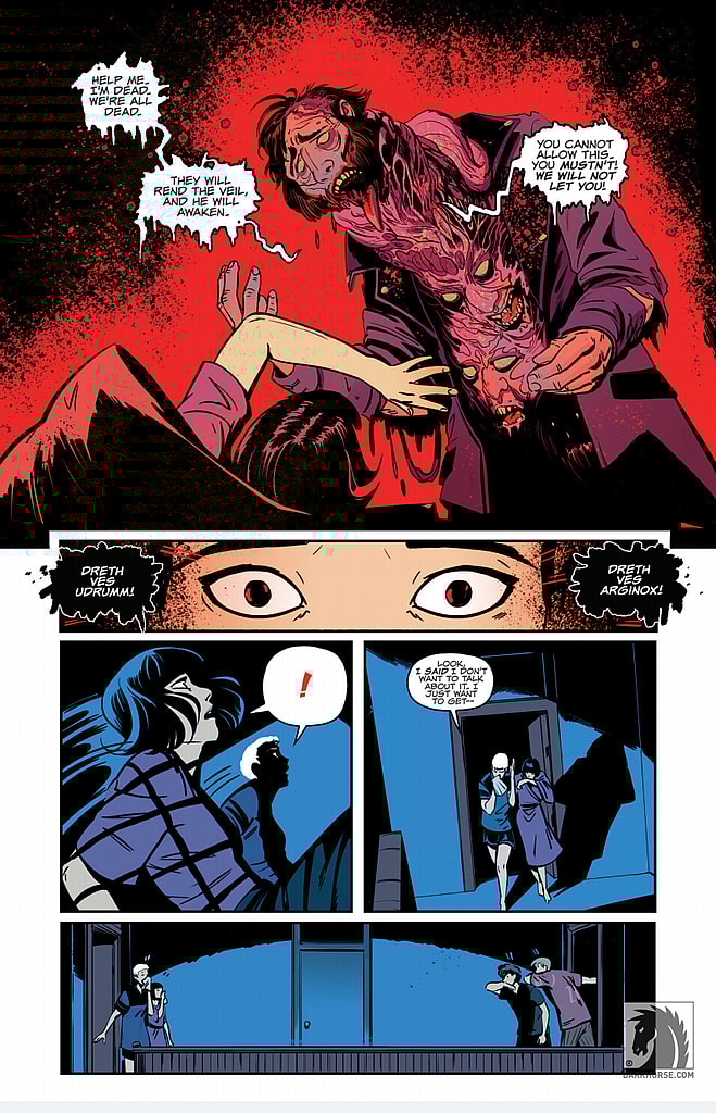 Everyone, from time to time, has felt like a bit of an outsider at school; especially at one’s first year of college. Being a freshman in high school is tough enough when you’re surrounded by people roughly the same age, but in college where you can be in class with people who have 20+ years on you, one can find themselves feeling conspicuously like an outsider. What if there was a college specifically designed for the freaks out there, though? What if there was an institution of higher learning that only extended an invitation to the weirdos, losers, and outsiders? Not too bad then, huh? And what if when you arrived you soon found out that your new University had a dark history full of death, magic, and dealing with Lovecraftian style elder gods? Sweet, right? That’s exactly the scenario the new class of Blackwood College and us, the reader, are introduced to in Evan Dorkin’s new supernatural series from Dark Horse Comics: Blackwood.
