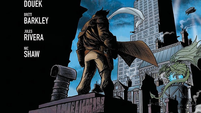 The story moves at a rapid pace as Cinder and Blacktooth find themselves in increasing levels of danger. However, it just doesn’t jump from action scene to action scene. Writer Rich Douek and artist Brett Barkley set up the story with three main points of conflict or action and in between they flesh out the world while also developing the main characters and progressing the story. Two of the more prominent supporting characters that make this world so interesting are a ratcatcher who has spies throughout the city and an information dealer with rare historical artifacts, one that just might have the answers Cinder is looking for.