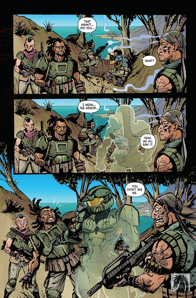 The premise this first issue sets up is fairly intriguing. I enjoy the idea of a team of Spartans being sent on a reconnaissance mission before they have a good understanding of their enemies. Even if four Spartans seems like a bit of overkill, it’s still nice to see them used as something other than a battering ram barging through the front lines. To that end, Master Chief himself comes off appropriately cool and threatening here. He carries a presence that commands respect from everyone he comes across; I just wish he was given more to do.