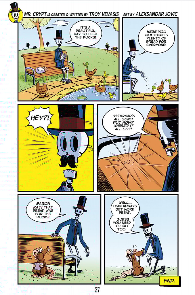 Like I said, some of the stories stand out more than others, but there were a few such as Hexed, Sleepships, and the hilarious Bloodfist: The Well that had me genuinely excited to read more. If the ultimate goal of this anthology was to sell more single issues of the comics it represents, then I say “job well done!” The other stories, while not terrible, didn’t quite grab me like these did, but there really is something for everyone here, so if you don’t like one story, you’re bound to find one you do like in just a few pages.