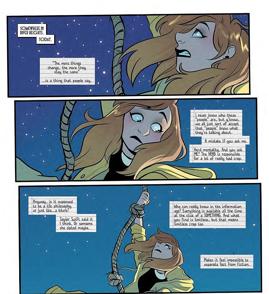 The characters themselves are a bit of a mixed bag. The Hardy Boys actually seem like a charming set of brothers, but we’re not given much time with them. Nancy Drew’s other friends range from harmlessly pleasant to angsty and annoying. Nancy herself, unfortunately leans towards the latter. Her new millennial update comes complete with a too-cool-for-school attitude that is reminiscent of every snot in high school that you always found yourself rolling your eyes at. I may sound like a bitter old man, but I don’t understand why we can’t update classic characters without turning them insufferable. It’s a problem that is not exclusive to comic books.