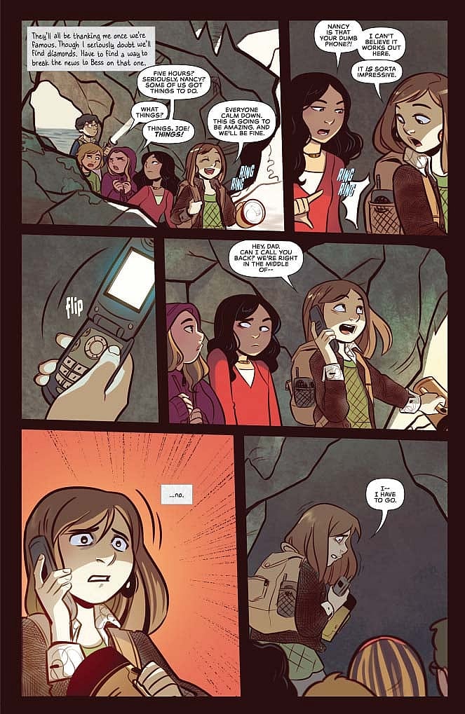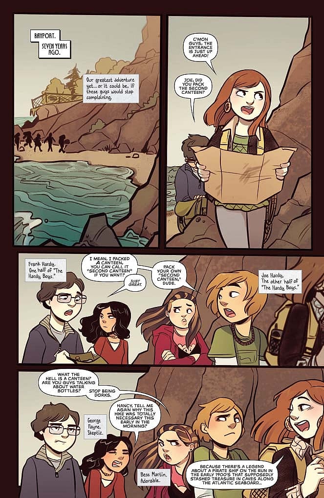 As I said earlier, a few of the side characters had left me with a glimmer of hope after the first issue, but save for only a couple of them, they are a largely annoying and surprisingly useless lot. The Hardy Boys are in on the antics and that right there should dictate that they can add something to the sleuthing since they are famously… y’know… detectives. Unfortunately, they add nothing of value to the proceedings and seem as clueless as everyone else. They are, like Nancy to her own namesake, the Hardy Boys in name only. Nancy’s friend Bess, however, is a bright spot in the otherwise cringe-worthy group of friends. She’s a sweet-natured cutey and her awkward “romance” with Joe Hardy is one of the only aspects of the book I found myself enjoying.