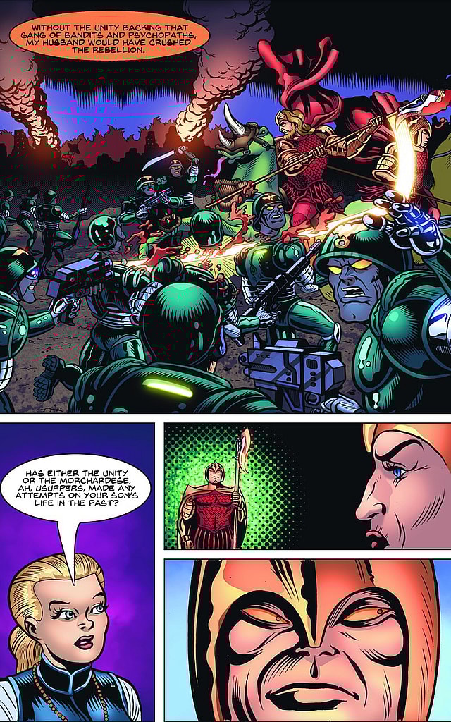 The artwork was one of my favorite things from the first issue and it’s even better this time around. We still get that great pulpy, adventure style aesthetic, but this time around everything is more detailed and there is a lot more attention paid to the backgrounds, which was not the case last time. The coloring is also a lot better in this issue. Instead of everything being dominated by one or two hues, most everything is colored in singularly and it really helps the world pop off the page.